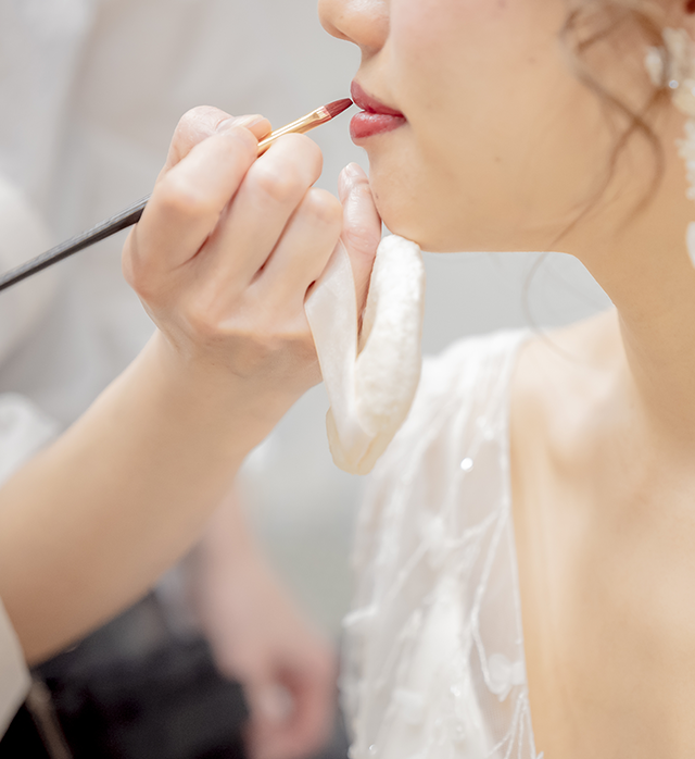 会場への出張によるヘアメイクと着付け業務も幅広く行っております。ブライダル、撮影やレセプション、各種イベントなど、豊富な経験と実績のあるエキスパートが担当いたします。